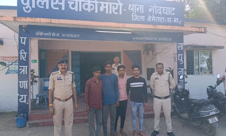 बेमेतरा जिले के नांदघाट थाना अंतर्गत पुलिस चौकी मारो क्षेत्र में हत्या की नियत से धारदार हथियार से हमला करने के मामले में पुलिस ने त्वरित कार्रवाई करते हुए चार आरोपियों को गिरफ्तार कर न्यायालय में पेश किया है, जहां से उन्हें न्यायिक रिमांड पर भेज दिया गया।